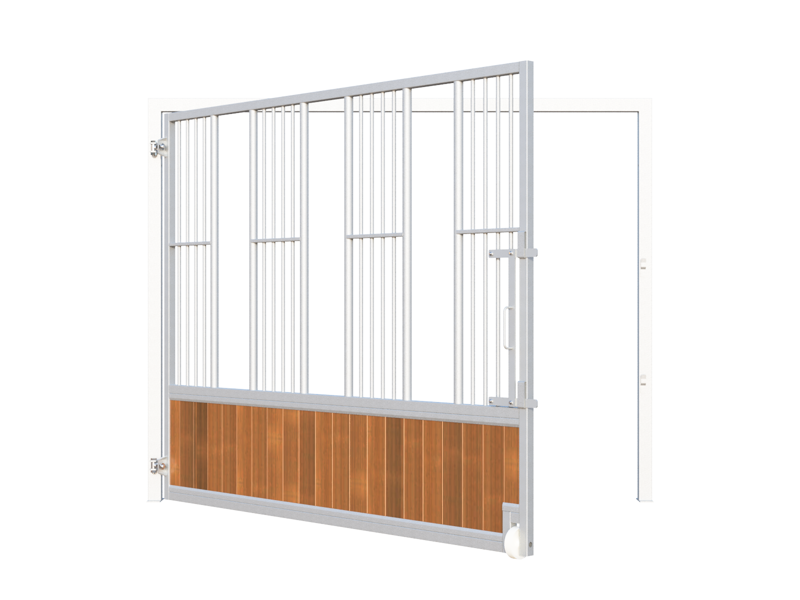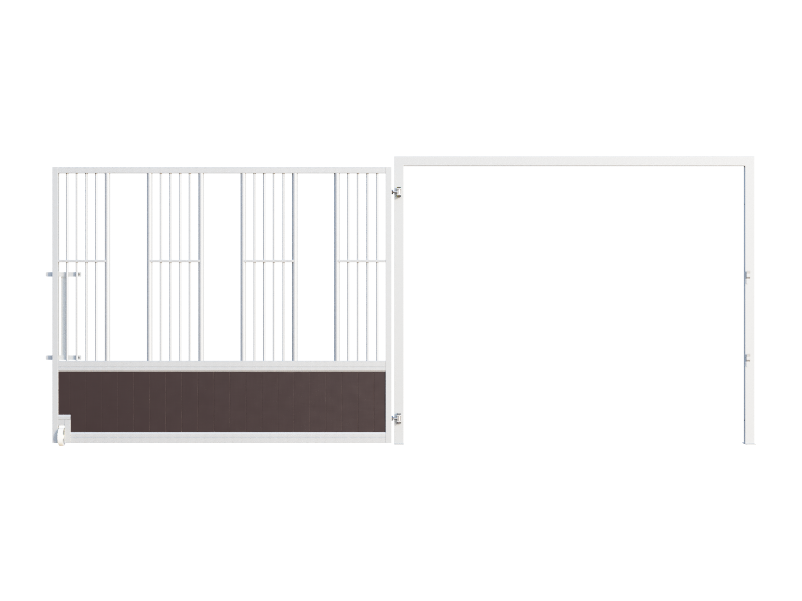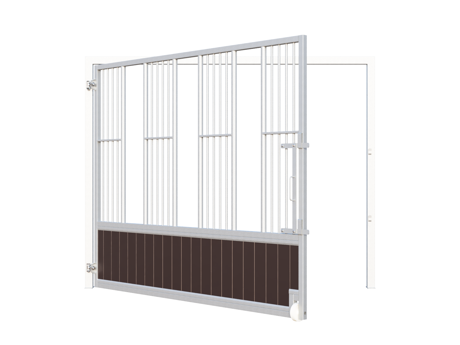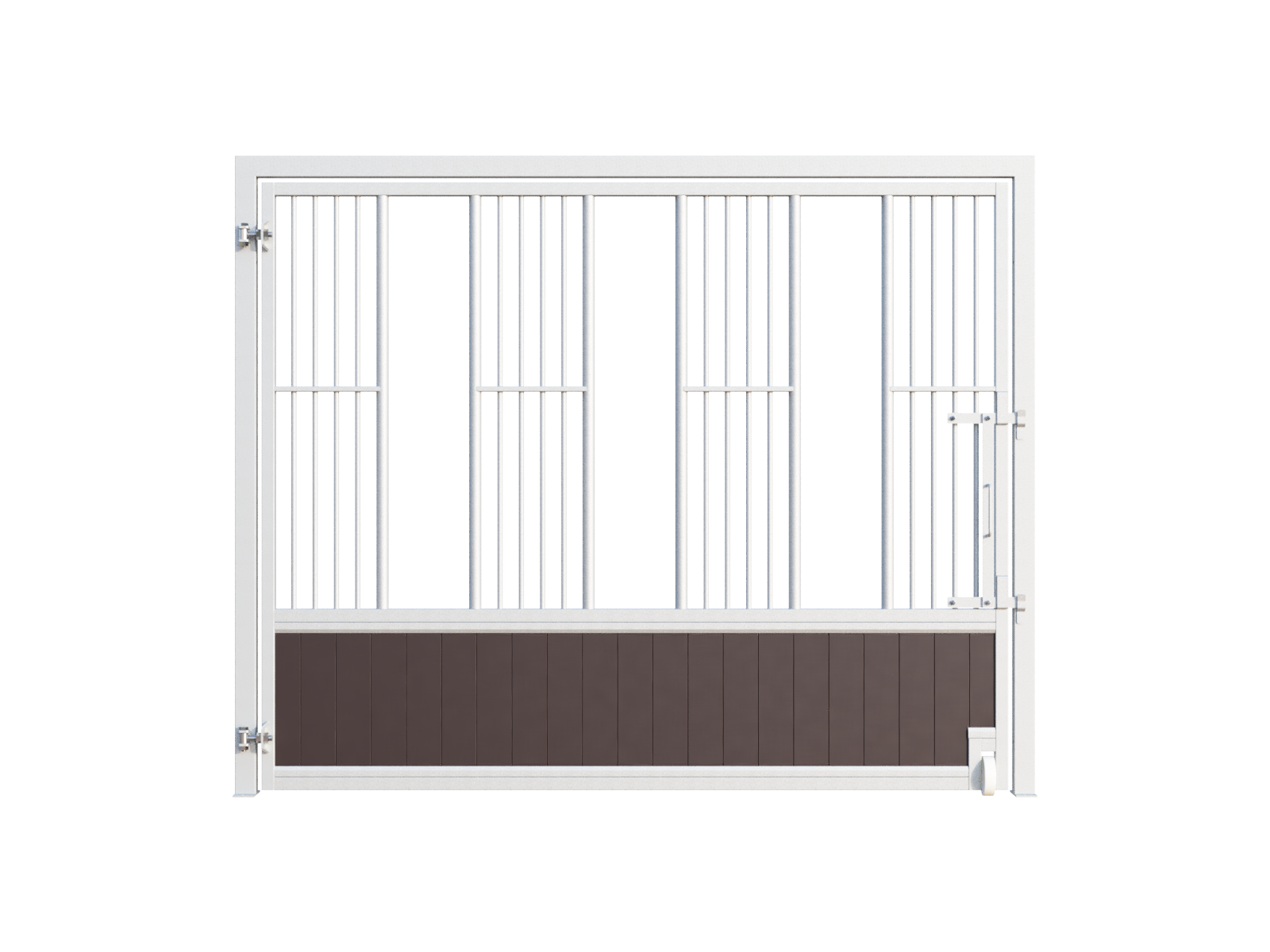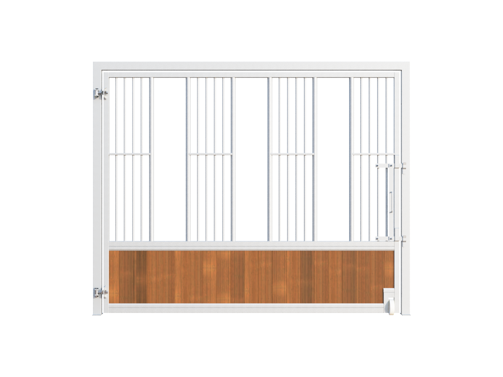 For the infill of the feeding wall, you can choose between maintenance-free polymer boards (black or brown) or bamboo boards. Polymer boards are ideal for outdoor use and very easy to clean. Bamboo offers a warm, premium appearance and is highly resistant to biting, making it both a durable and environmentally responsible alternative.