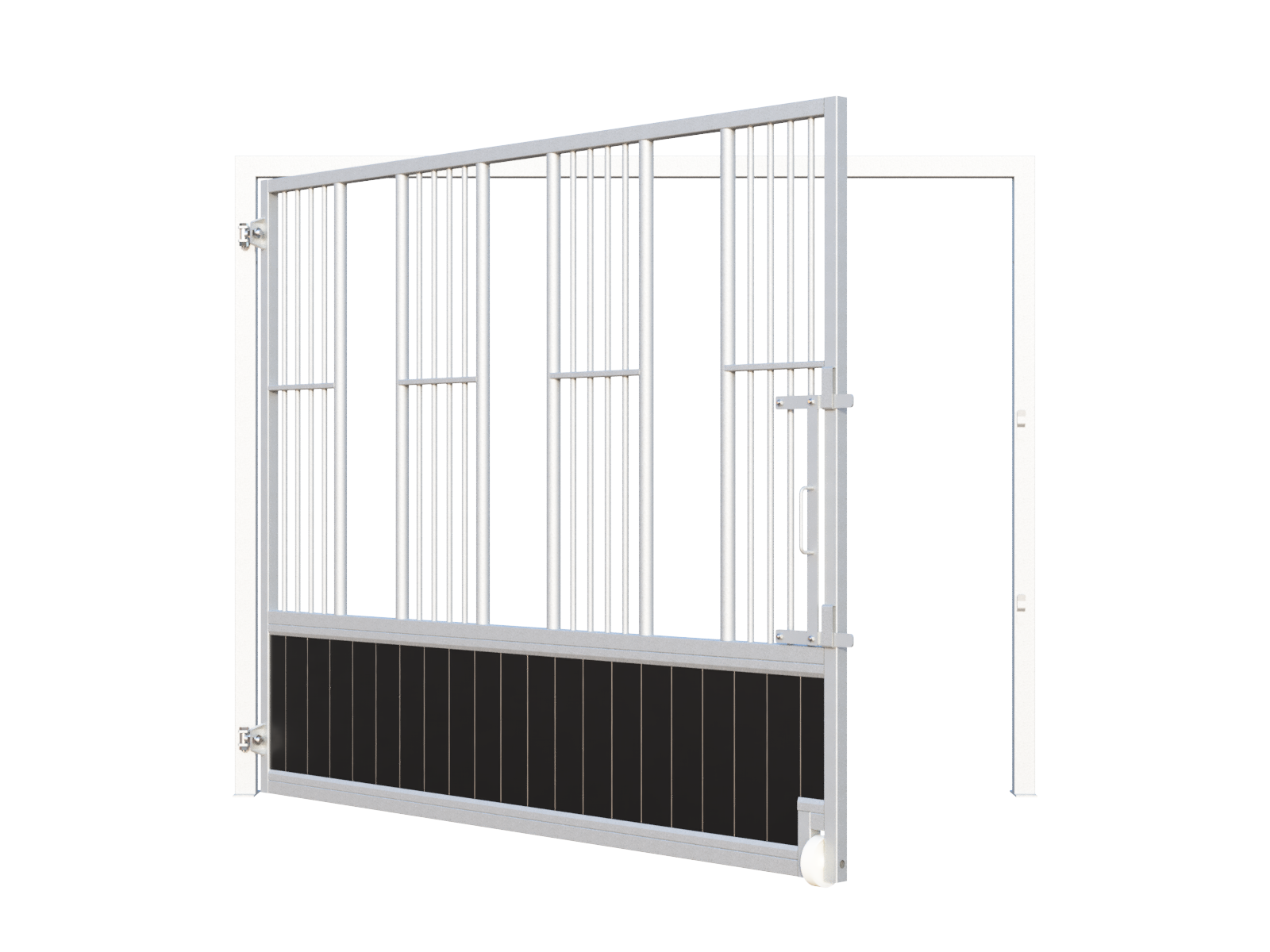 With three feeding places and a fully rotating design, this feeding wall is ideal for stables where efficient mechanical mucking out is required. The robust construction with 50 x 50 mm steel profiles gives the wall a solid, safe and professional appearance, perfectly suited for intensive daily use.