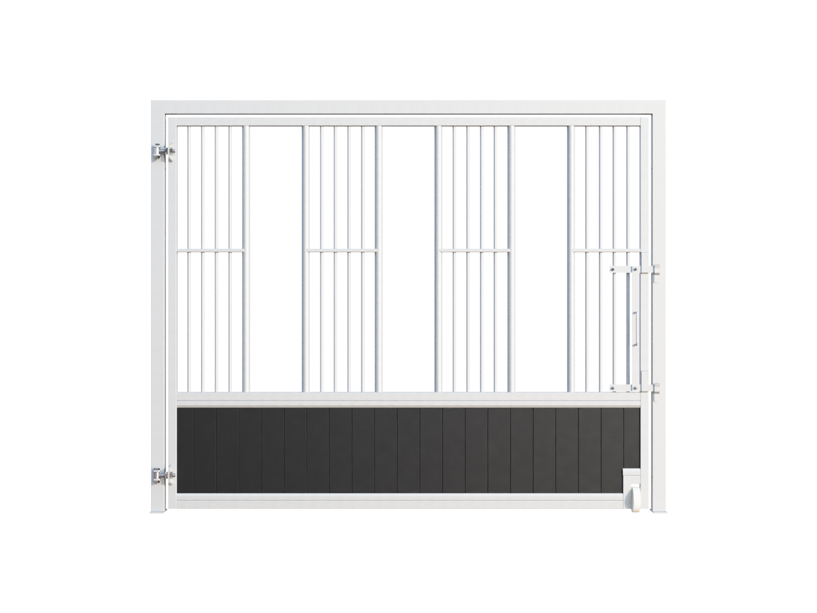This Premium Stable Box Feeding Wall, also referred to as a Group Housing Feeding Wall, is designed for group housing systems such as group stables and livery yards where multiple horses are housed and fed simultaneously. Developed with attention to detail, it is specifically intended for stable environments where efficiency, overview and safety are essential, including professional riding schools and breeding facilities.