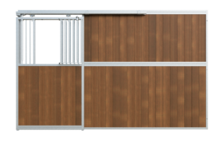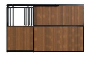 This stable front is suitable for both indoor stables, where it contributes to calm and comfort for the horse, and sheltered outdoor stables, where it offers additional protection against wind and rain.