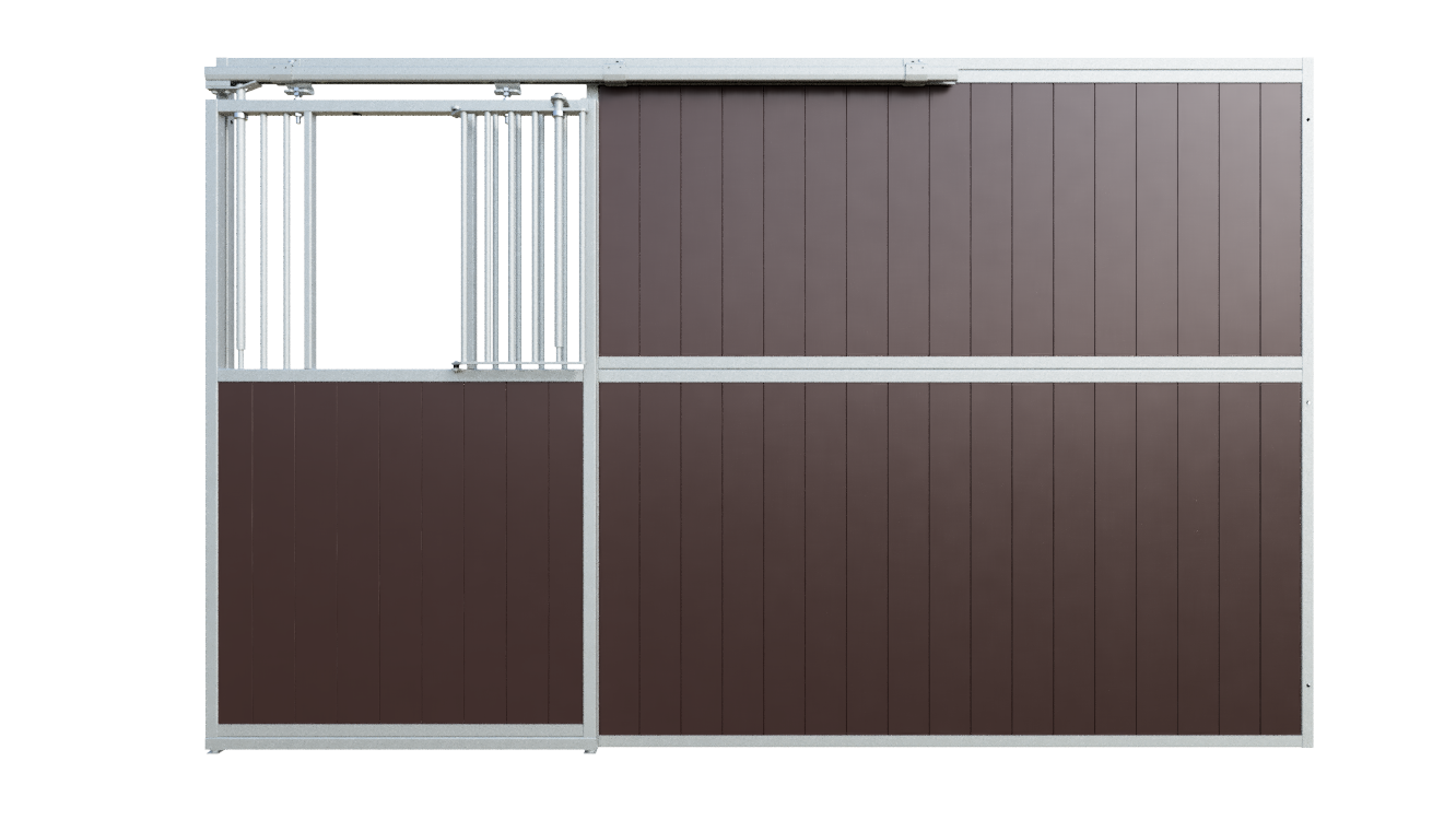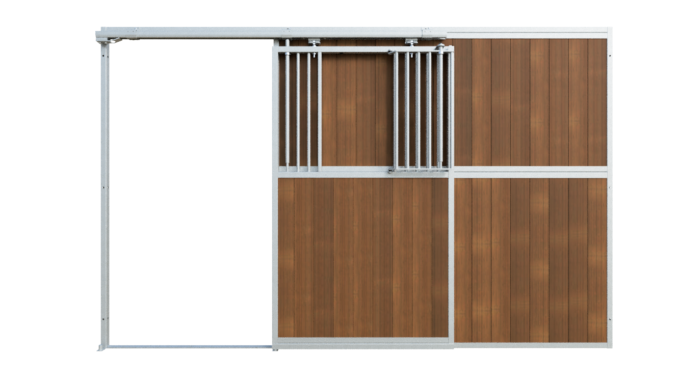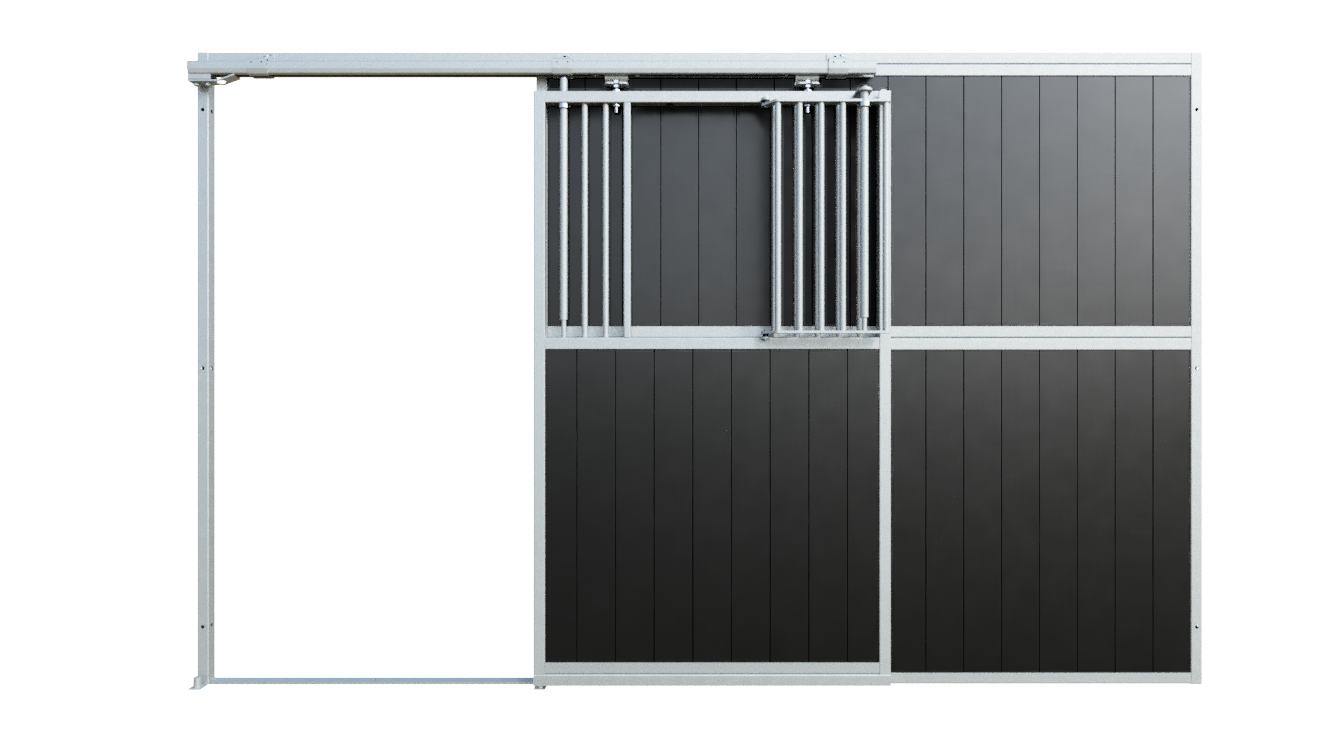 In addition to the space-saving benefits of a sliding door, the integrated mini door offers extra functionality. The mini door can be opened independently, allowing the horse to put its head outside without opening the entire sliding door. This supports social interaction and daily routine, while the mini door can be securely fixed to ensure safety at all times.