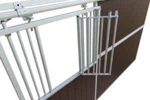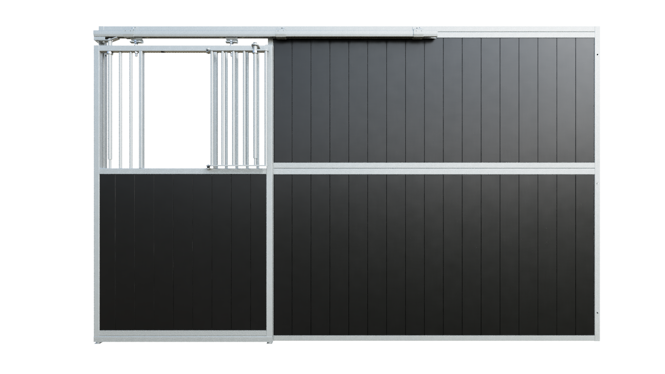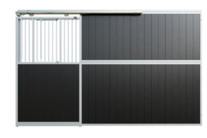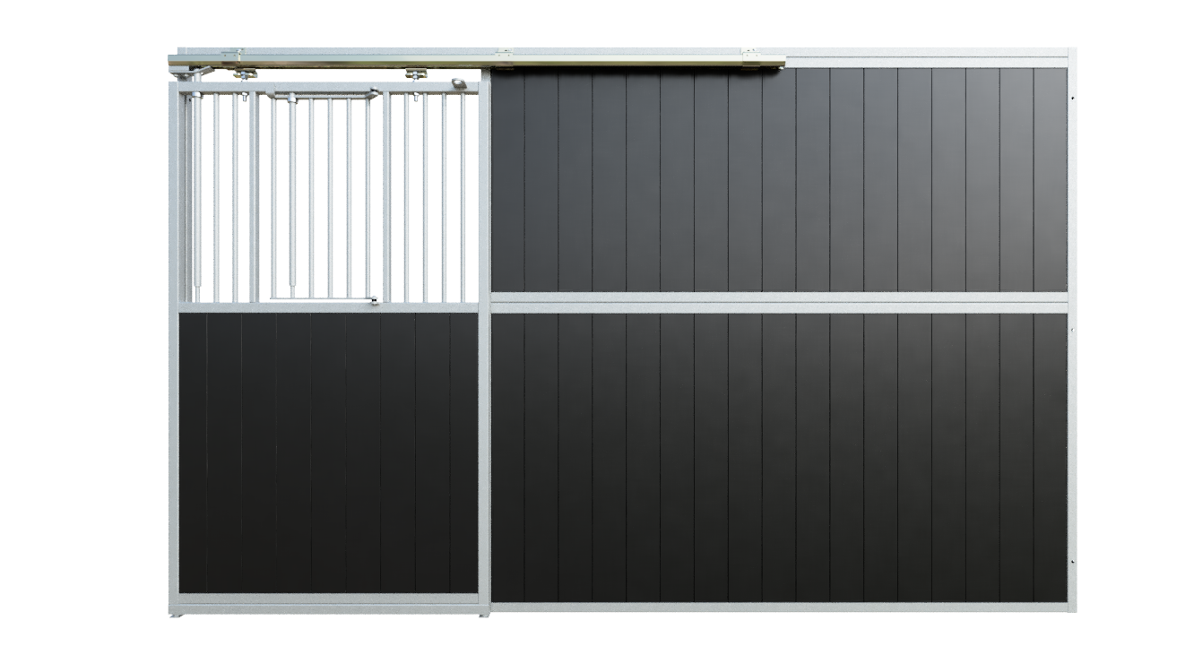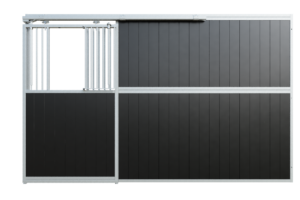 This Stable Box Front Basic is manufactured from high-quality hot-dip galvanised steel, ensuring long-term durability and protection against corrosion. The front is available in widths of 3000, 3500 or 4000 mm and has a standard height of 2200 mm, meeting all relevant safety requirements.