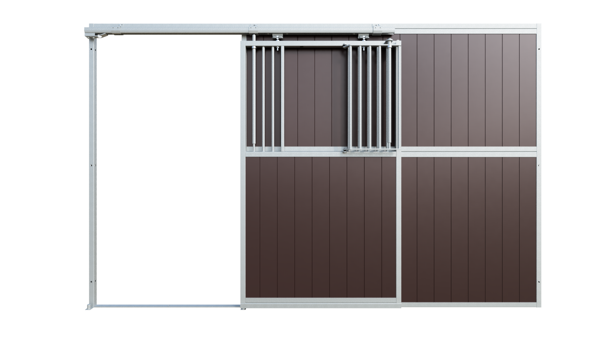 The sliding door can be configured to open either to the left or to the right, depending on the layout of the stable.