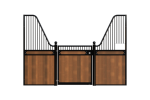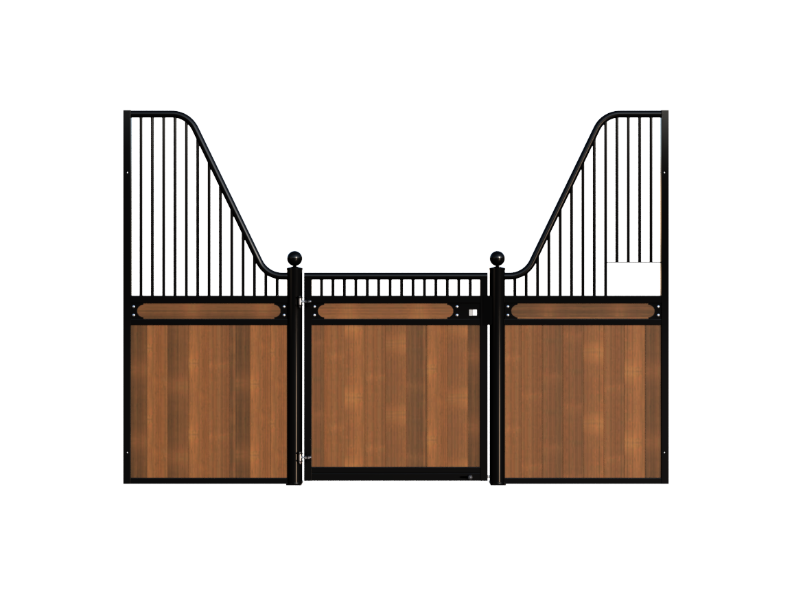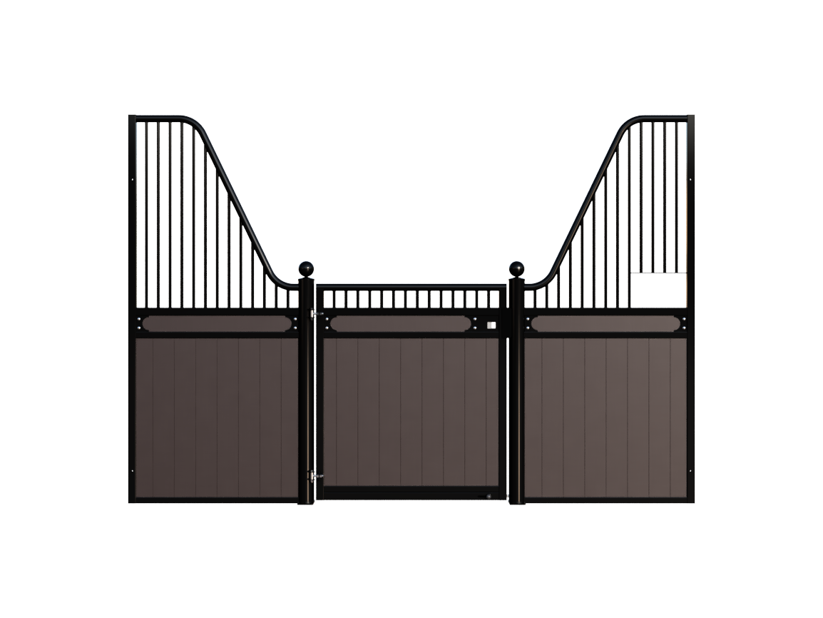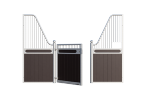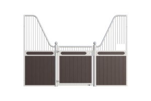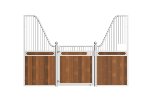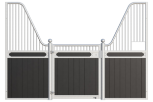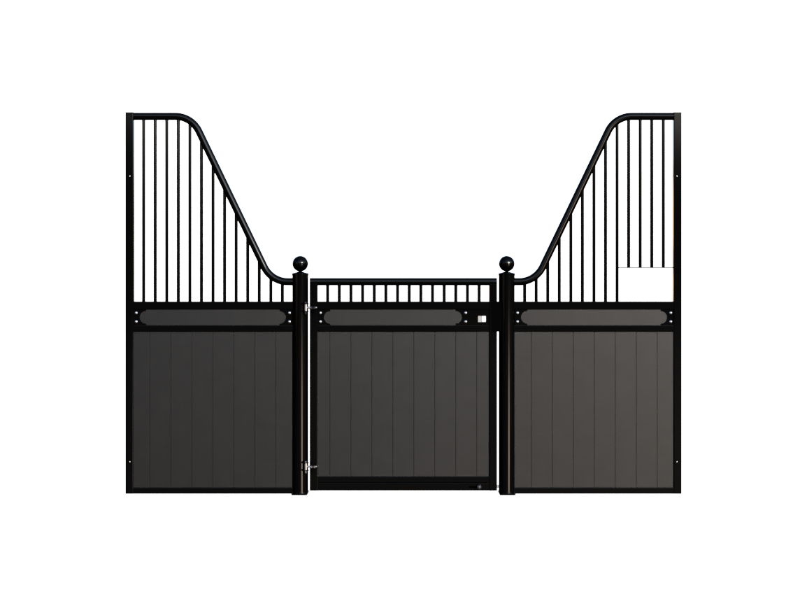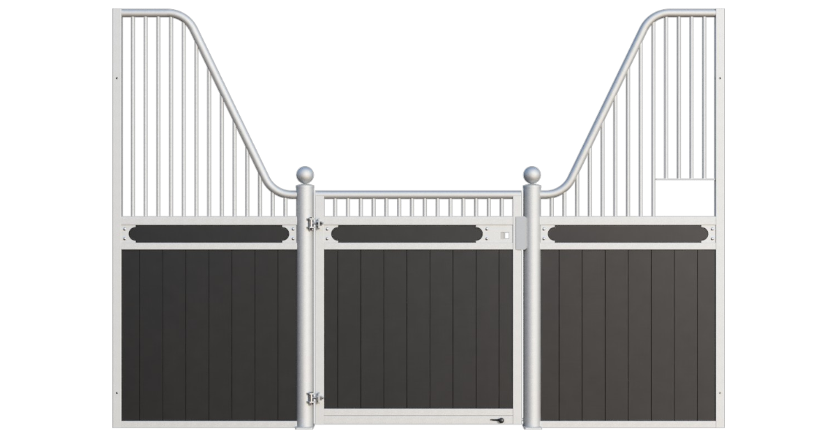 The Stable Box Front Premium Luxe Low with Swing Door from Mulder Stable and Yard combines classic design with durable construction. Featuring decorative finials, a robust swing door and a hot-dip galvanised steel frame, it offers a reliable solution for professional indoor and sheltered outdoor stables across Europe.