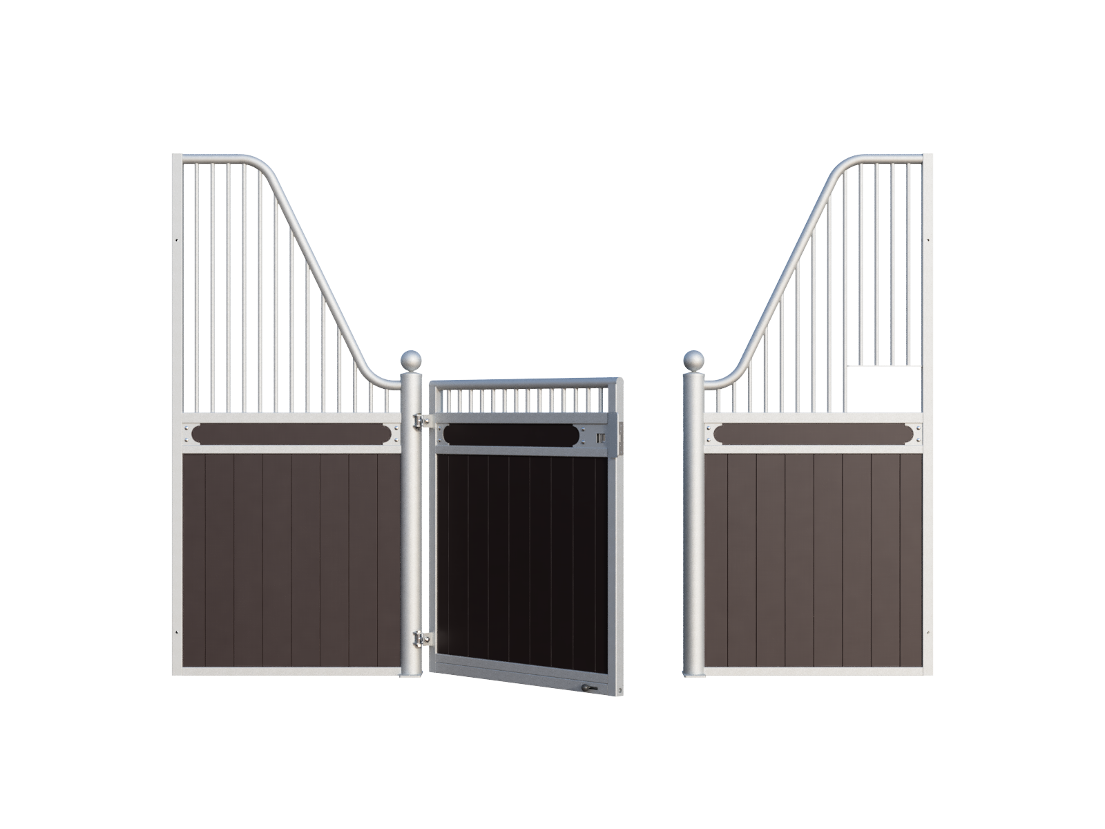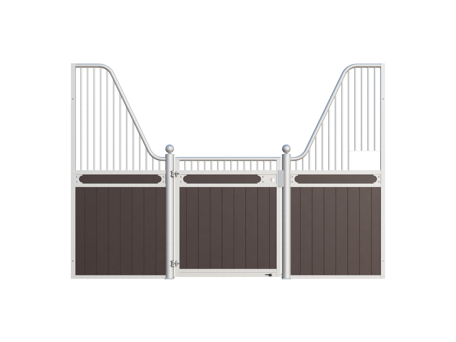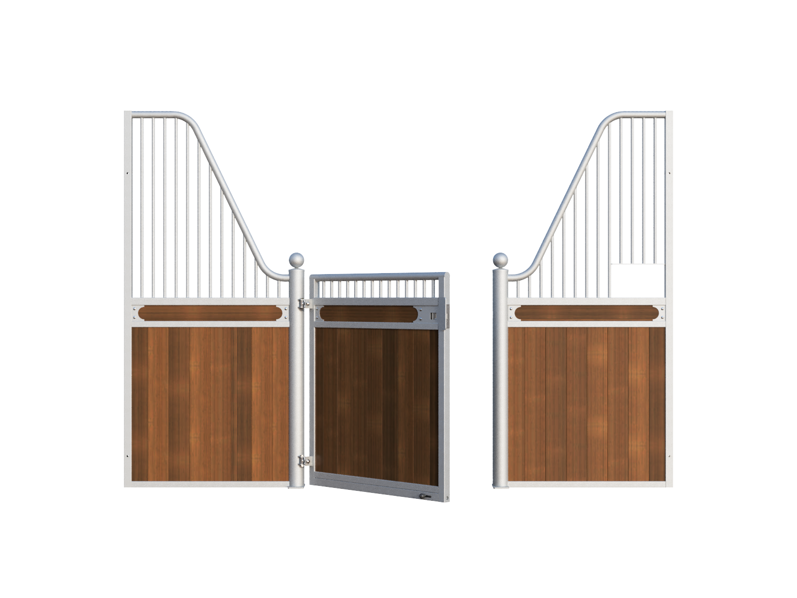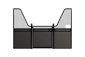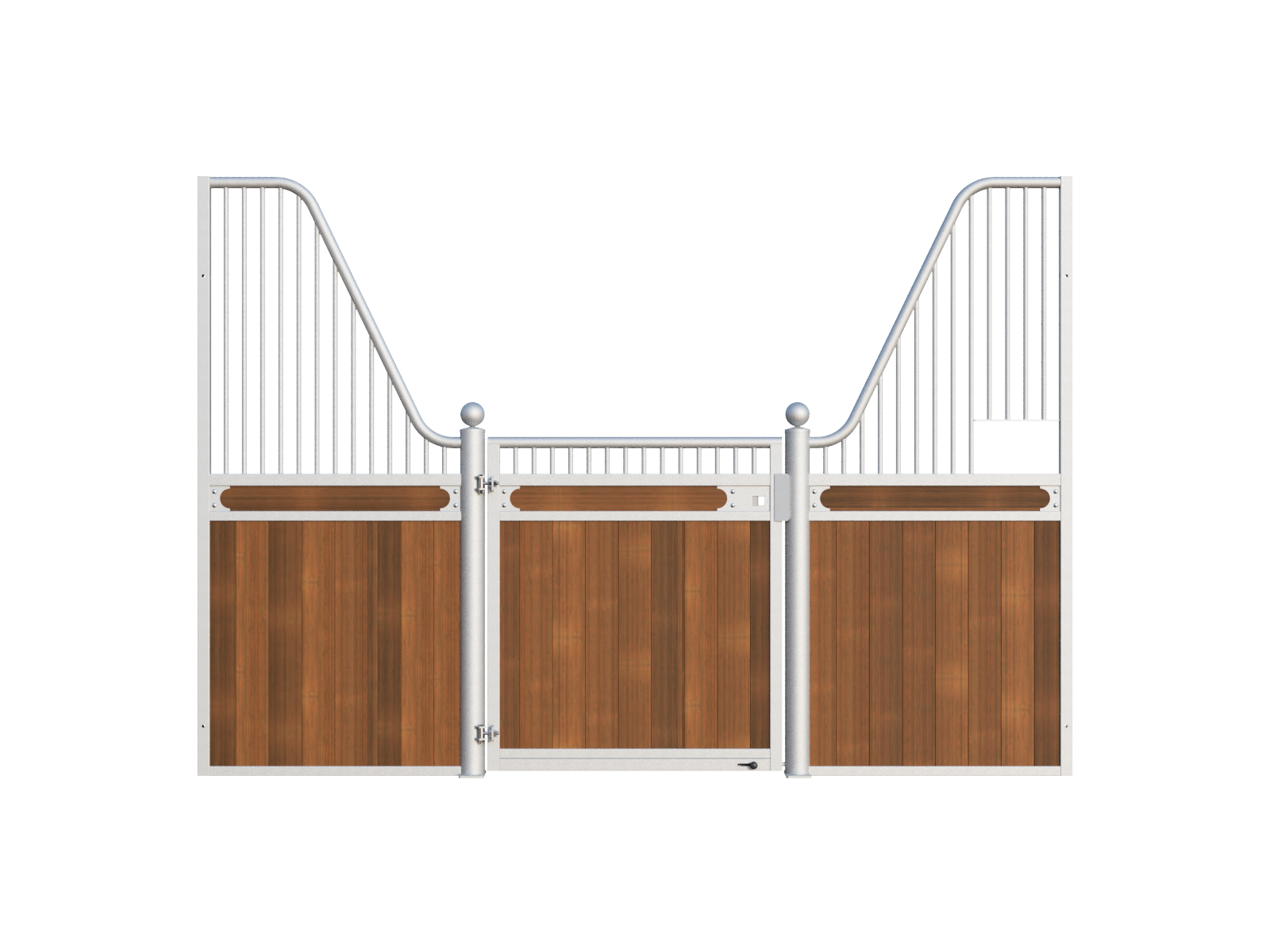 The Stable Box Front Premium Luxe Low with Swing Door from Mulder Stable and Yard combines classic design with durable construction. Featuring decorative finials, a robust swing door and a hot-dip galvanised steel frame, it offers a reliable solution for professional indoor and sheltered outdoor stables across Europe.