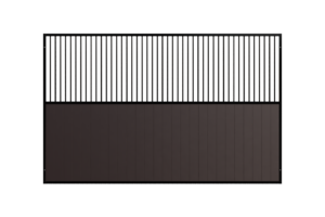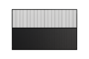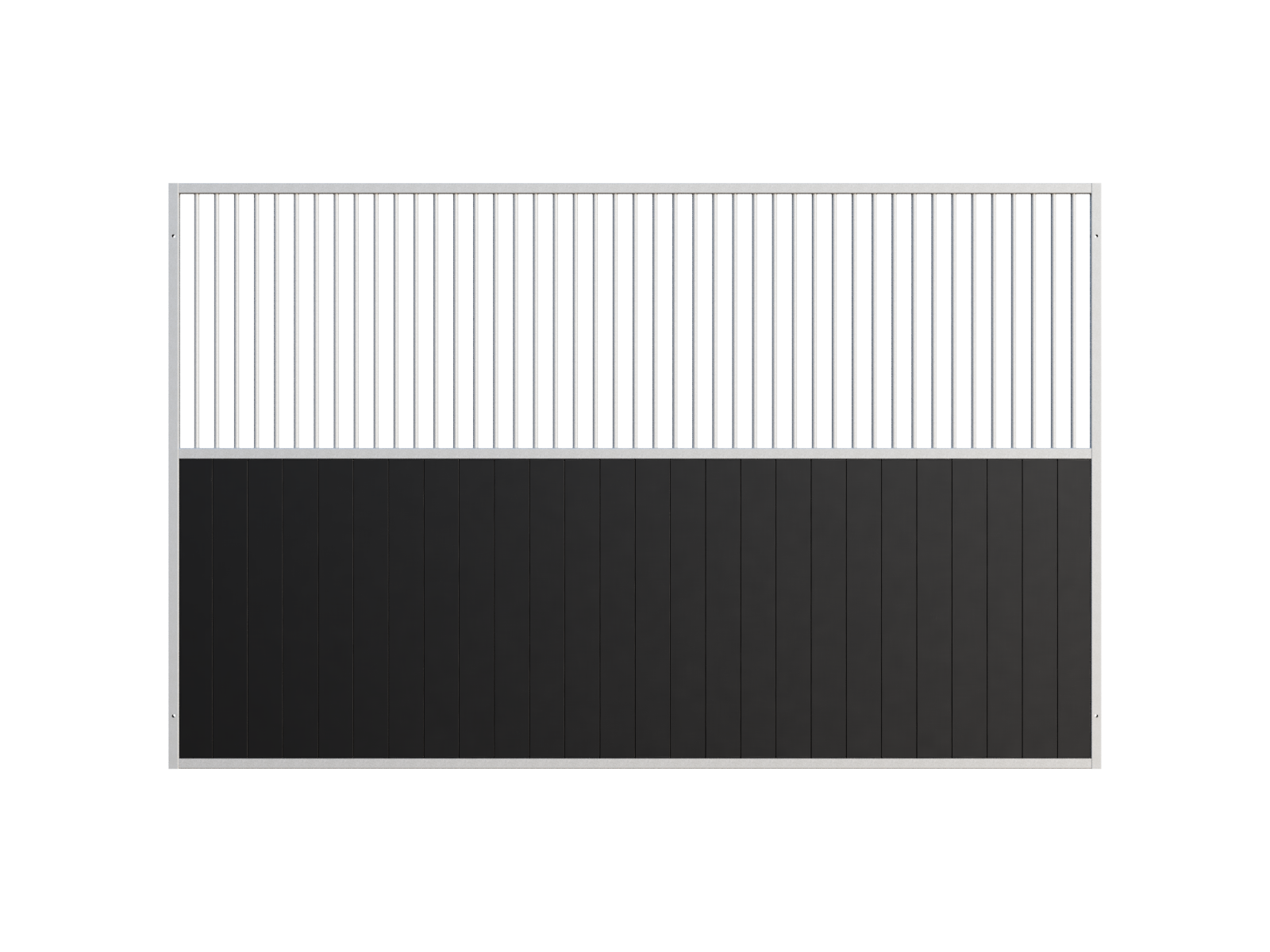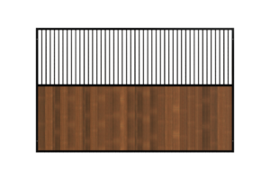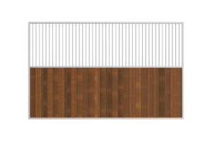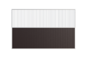The Basic stable box partition with upper bars provides a practical and safe separation between horse boxes while maintaining social contact between the horses. The open upper section allows horses to see each other without the risk of injury. This partition is supplied as standard with a height of 2200 mm and is available in multiple widths, including 2500, 3000, 3500 and 4000 mm.