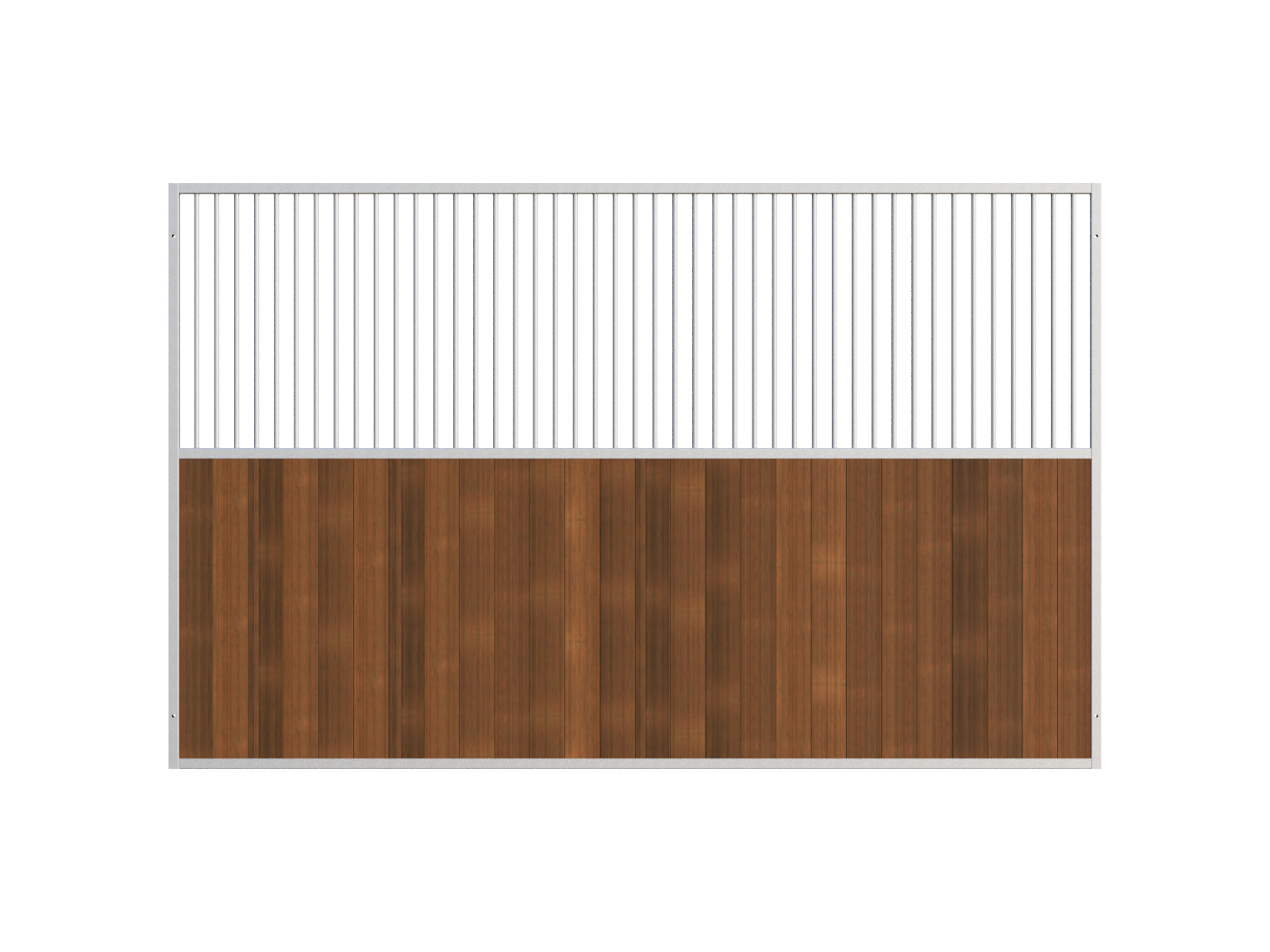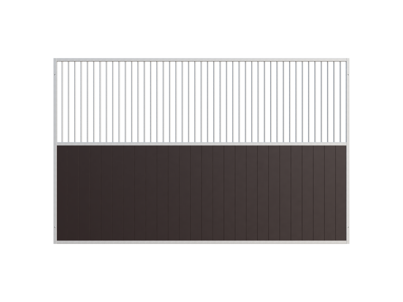 Thanks to the fully hot-dip galvanised steel, the partition is highly resistant to corrosion and wear. Combined with solid polymer or bamboo boards, this results in a maintenance-free solution with a long service life, suitable for indoor stables and sheltered outdoor stables.