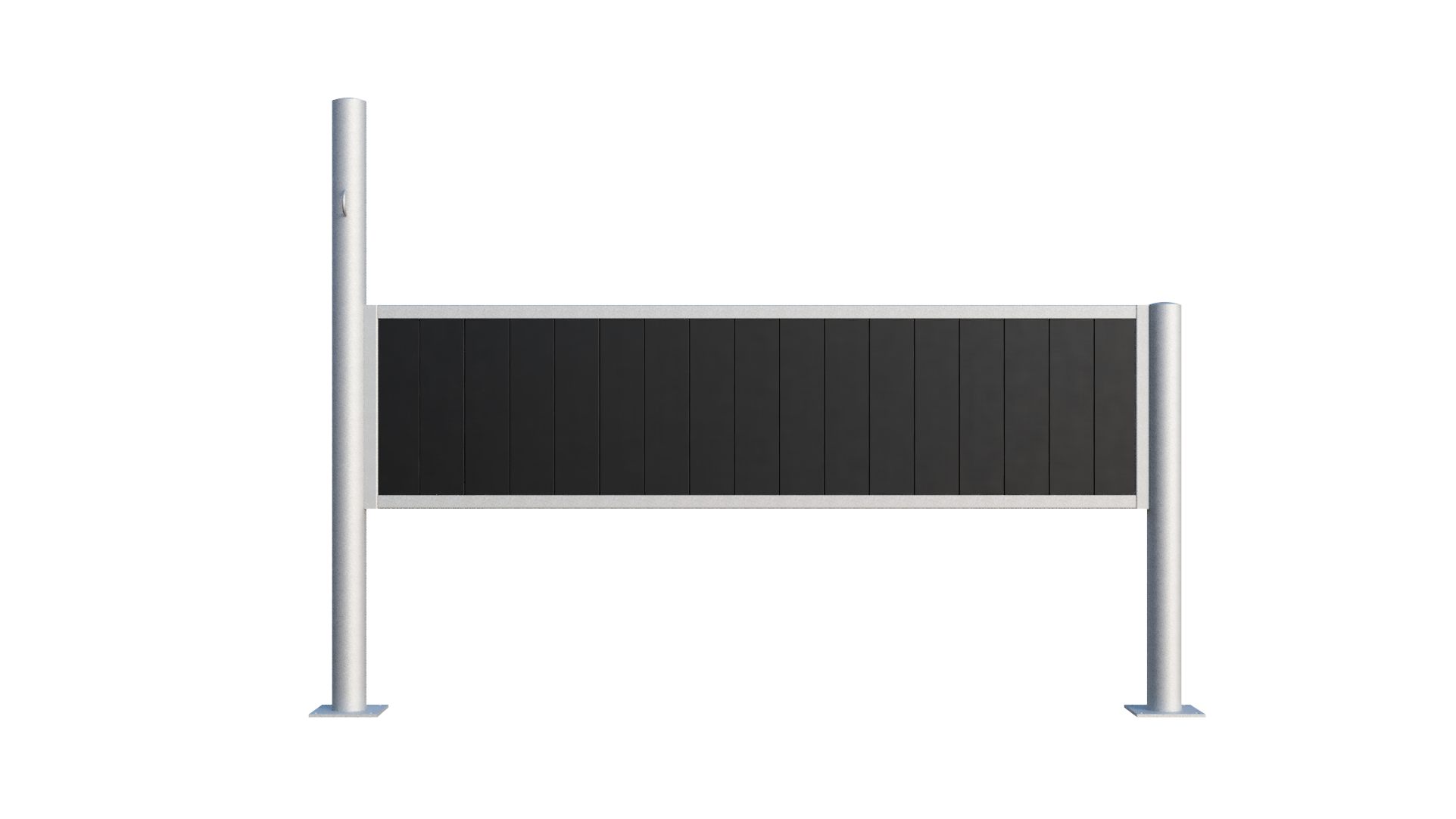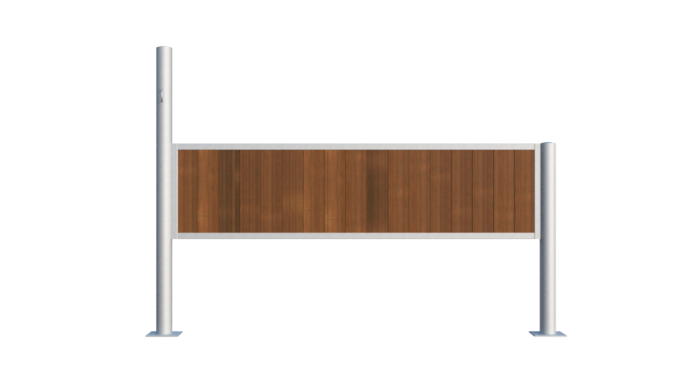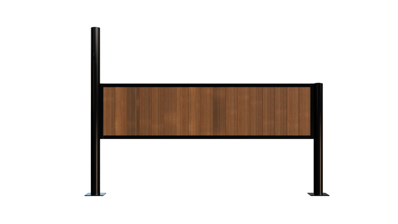 With overall dimensions of 2500 x 1200 mm and a 1800 mm high wash bay post fitted with two tie rings, this wash bay wall offers excellent stability and ease of use. You can choose the infill material yourself: maintenance-free polymer boards in black or brown, or premium bamboo boards for a warm, natural look.