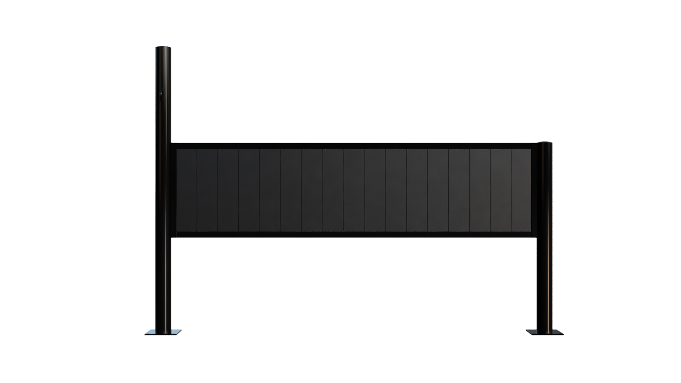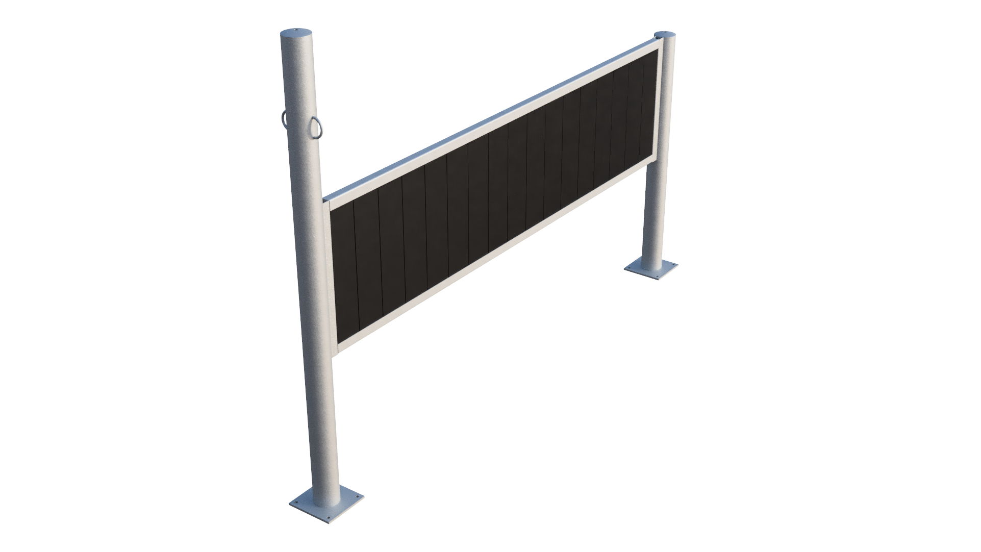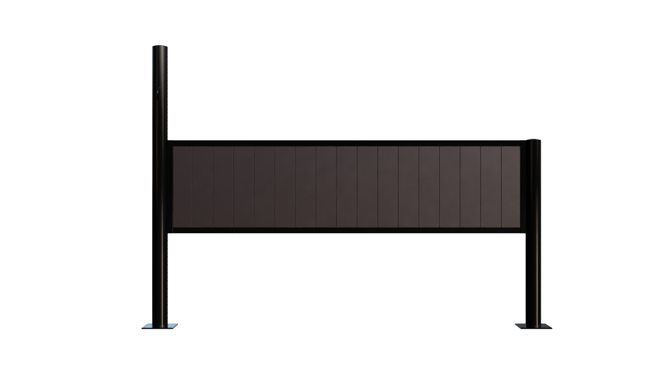 With overall dimensions of 2500 x 1200 mm and a 1800 mm high wash bay post fitted with two tie rings, this wash bay wall offers excellent stability and ease of use. You can choose the infill material yourself: maintenance-free polymer boards in black or brown, or premium bamboo boards for a warm, natural look.