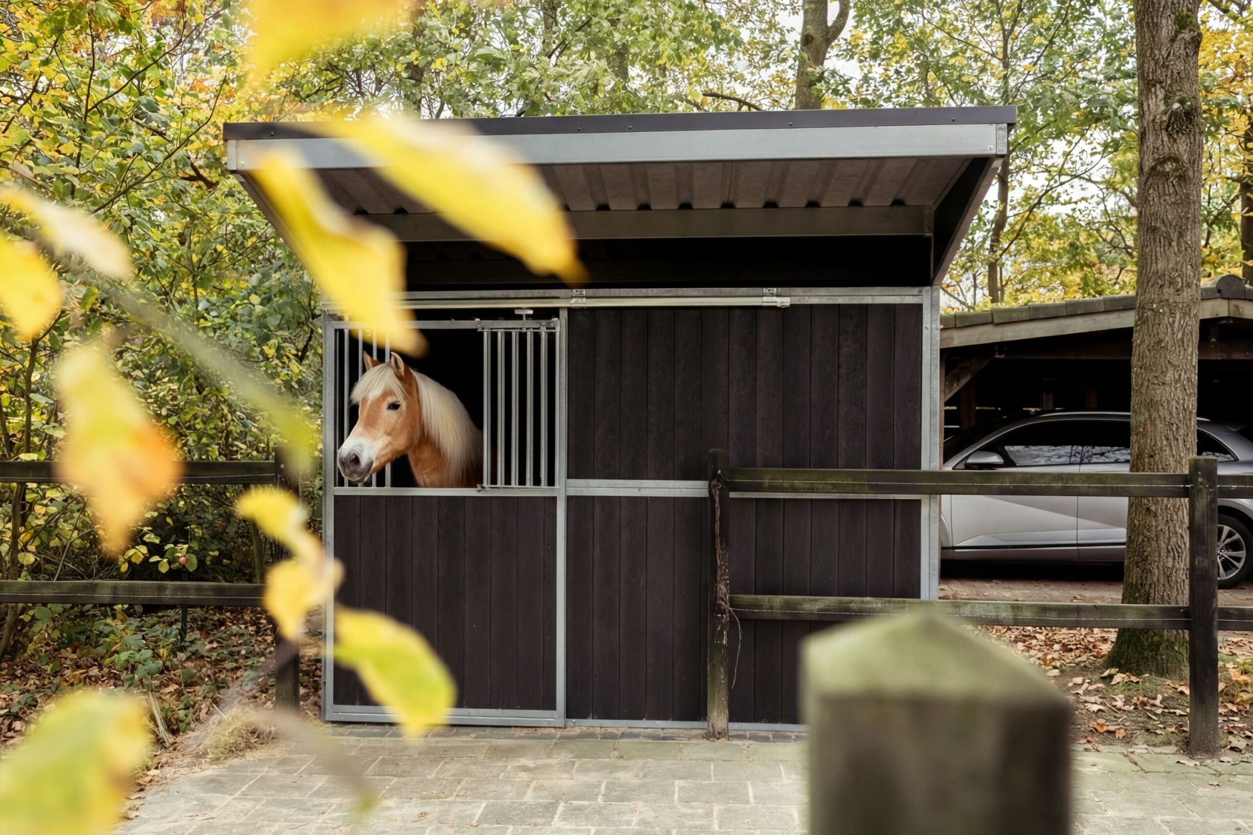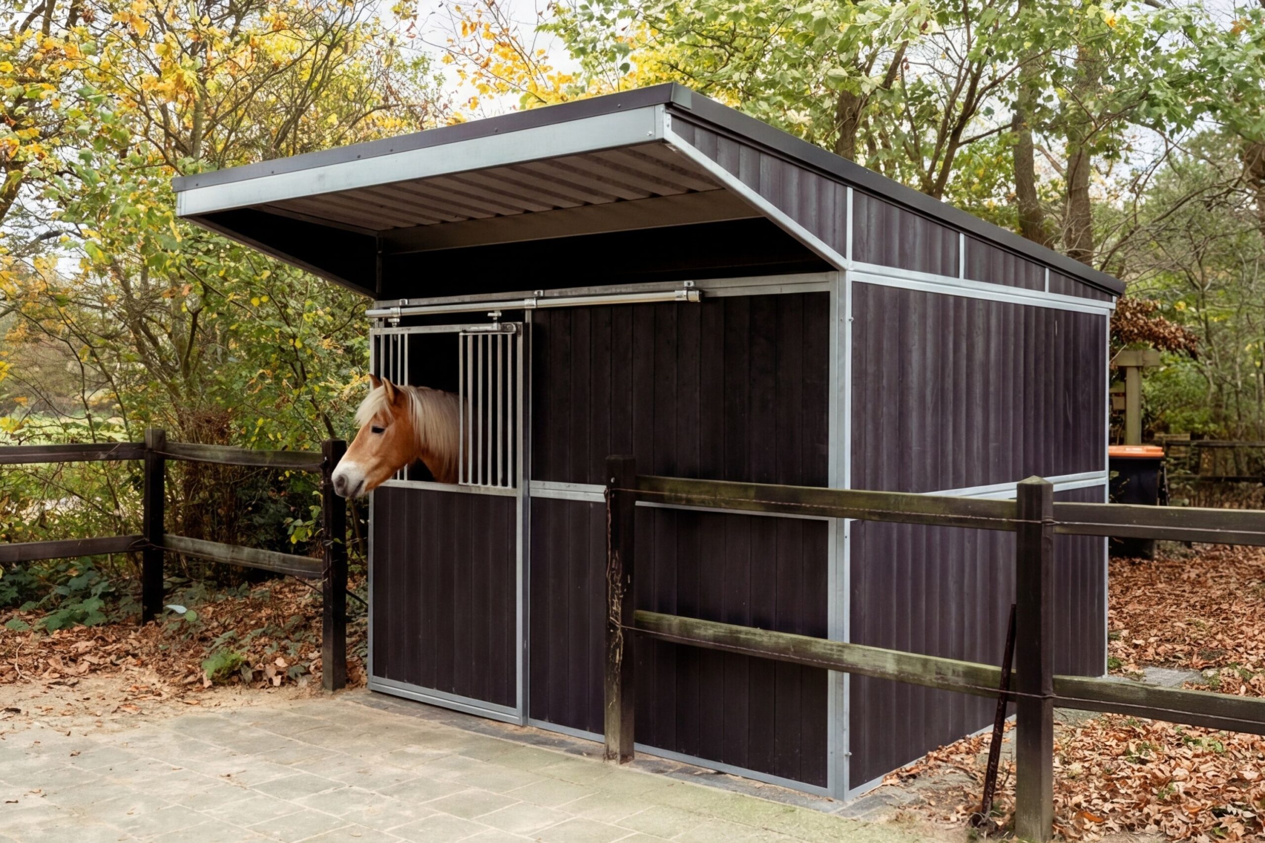 For this project, we realised a compact, maintenance-free outdoor horse stable with one spacious horse box. A smart and well-balanced solution for creating additional stable space on the property, where functionality, comfort and safety come together in a calm and practical layout.