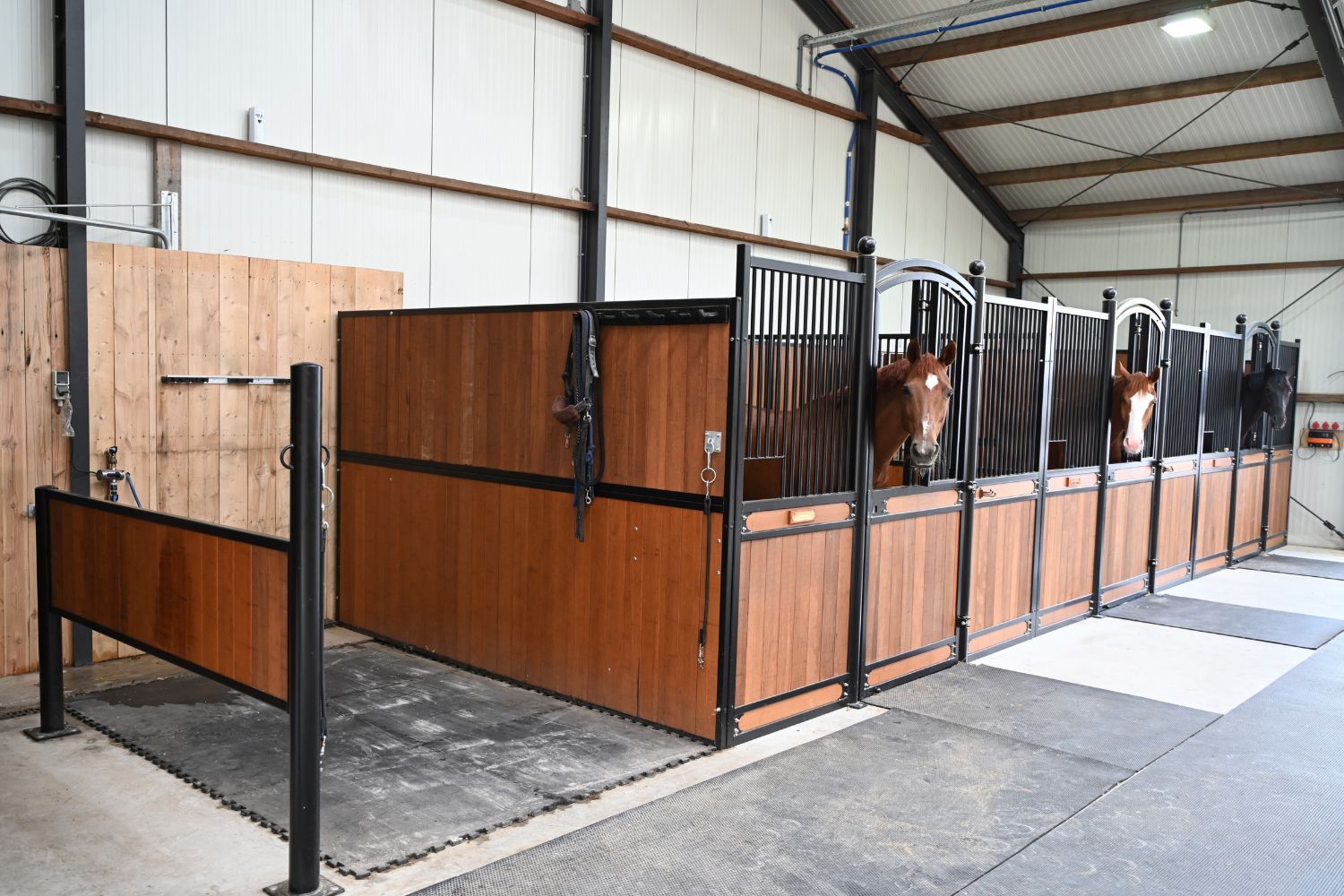 We recently delivered a high-end indoor stable configuration consisting of three exclusive horse boxes with an integrated wash bay. The client deliberately chose a combination of natural warmth and modern luxury: bamboo planks set within black powder-coated steel frames. This results in a durable, low-maintenance solution that also forms a timeless and refined overall design.