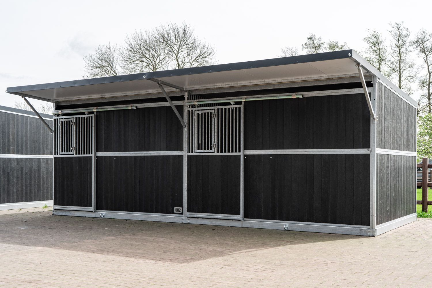 For those who require extra stable capacity quickly and responsibly, Mulder Stable and Yard offers a solution that works from day one. Our mobile outdoor stables are available from stock and can therefore be delivered rapidly. Within the Netherlands and surrounding countries such as Belgium, Germany and Luxembourg, installation often takes place within 5 working days. For other European countries, the average delivery time is approximately 7 working days, depending on the destination. The stable is delivered fully assembled and comes standard with feed and water bowls. Thanks to its well-thought-out design and robust materials, this mobile stable is suitable for a wide range of applications, from temporary housing to planned expansions.