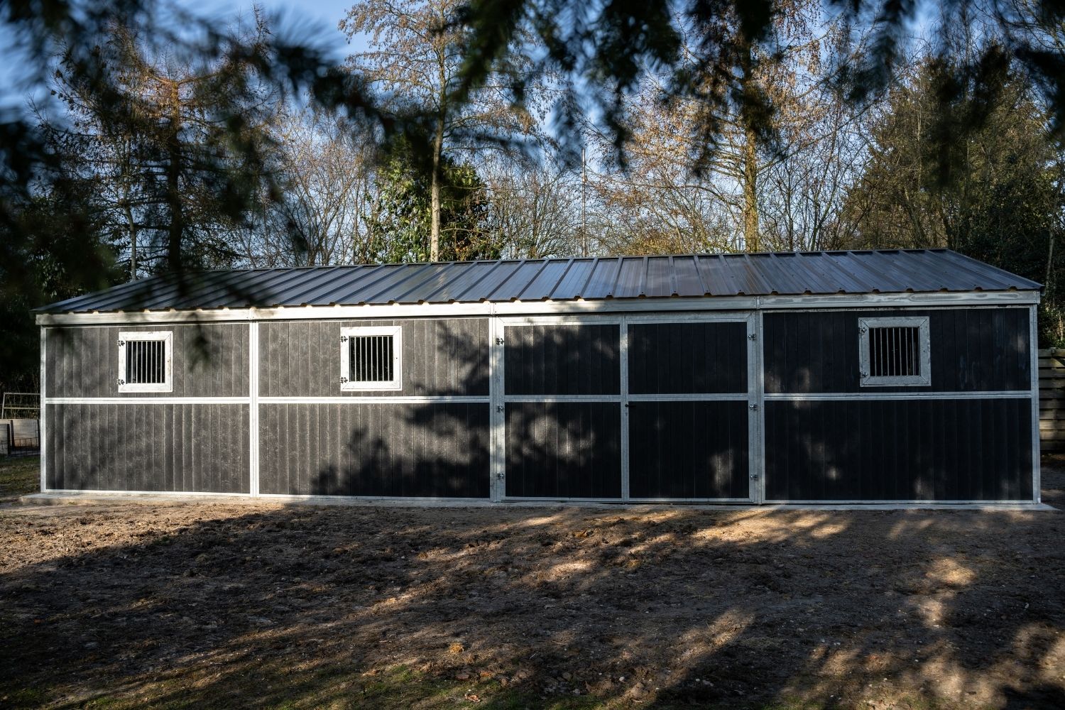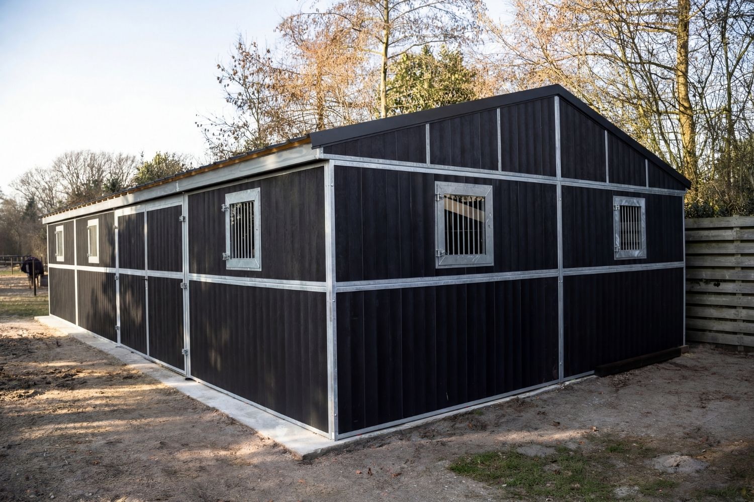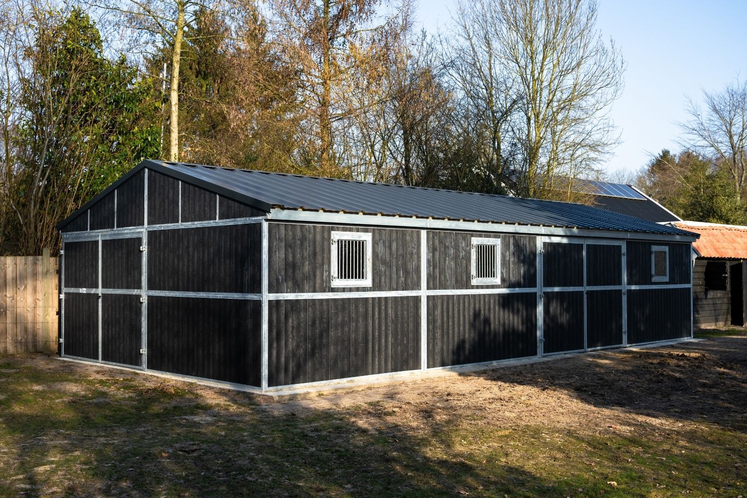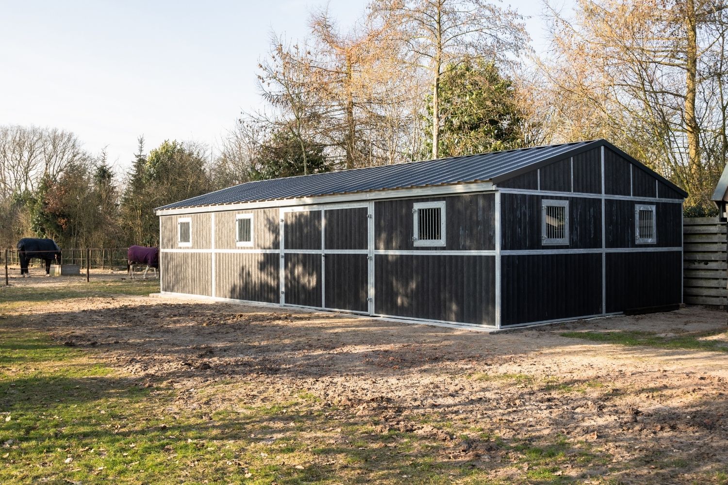 This outdoor stable was delivered from our extensive in-house stock. By maintaining a large inventory of outdoor stable systems and components at our Dutch headquarters, we can respond quickly and realise short delivery times.