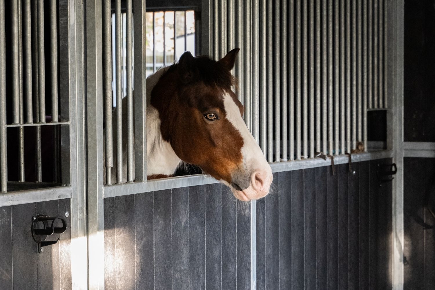 The horse boxes are fitted with sliding doors and practical half doors. This allows the horses to put their heads outside, stay engaged with their surroundings and participate in the stable environment.