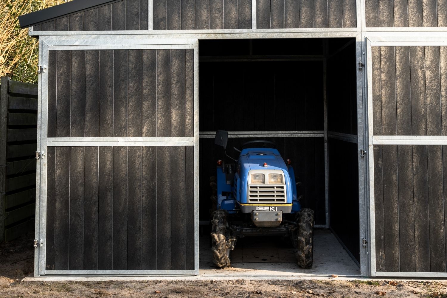 There is ample space for feed, rugs, tools and other materials. Even a compact tractor can be easily stored here. The storage area is directly connected to the stable while functioning as a clearly defined and organised compartment. This makes the outdoor stable suitable not only for horse housing, but also for efficient yard management.